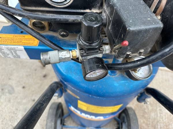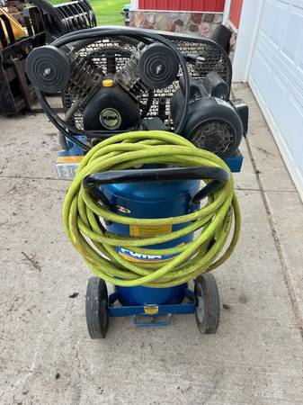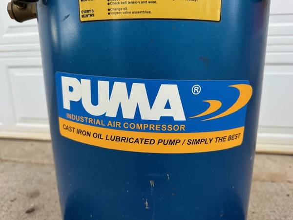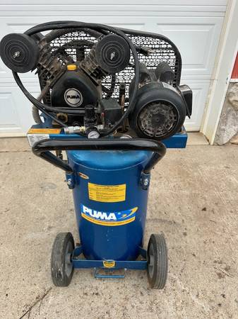 Puma Industrial Air Compressor, 5HP, with regulator. Has had very little use, runs good and holds its PSI. Comes with nearly new hose. $350.00 Cash Only, Brainerd, no text or emails please, phone...