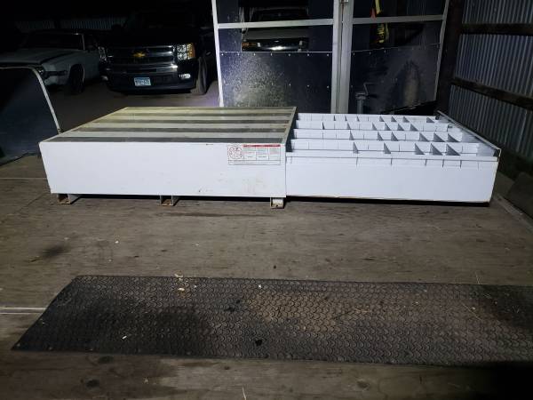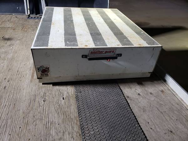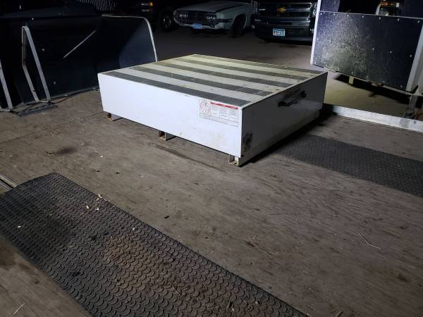 Pack Rat tool box, has a slide out drawer with compartments of which you can adjust in size. Box is 48"×40"×13".