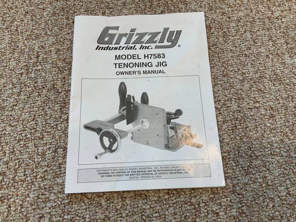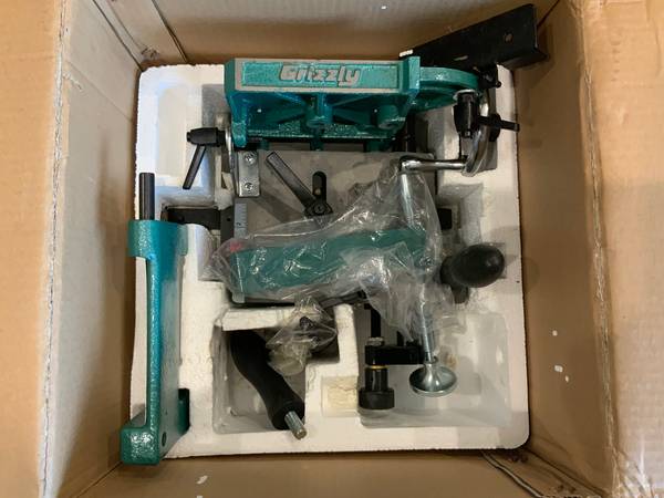New, never-used Grizzly cast-iron tenoning jig in original box with manual.
