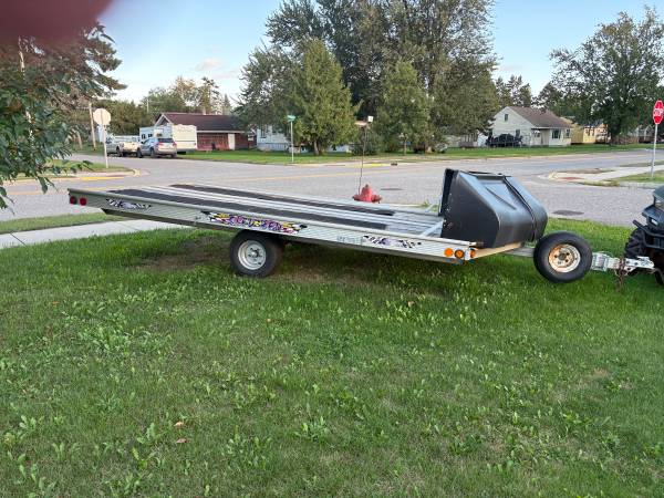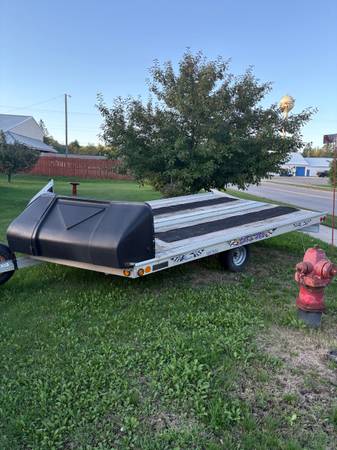 trailer-12' x 8' aluminum trailer by Sledbed, used as snowmobile trailer & 4 wheeler trailer, good condition, comes with slide out ramps and includes portable ramps, selling due to physical...