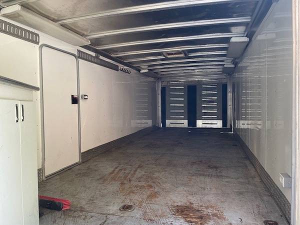 8.6' x 27' V Nose Snowmobile Trailer. Rear and Front Ramp. Side Door. Aluminum. Good tires. Good shape. Cabinets. Spare Tire. Great for hauling, storing, camping, hunting shack, you name it. Outlets in the interior. Lights in the interior. 1997 in good condition and works well.