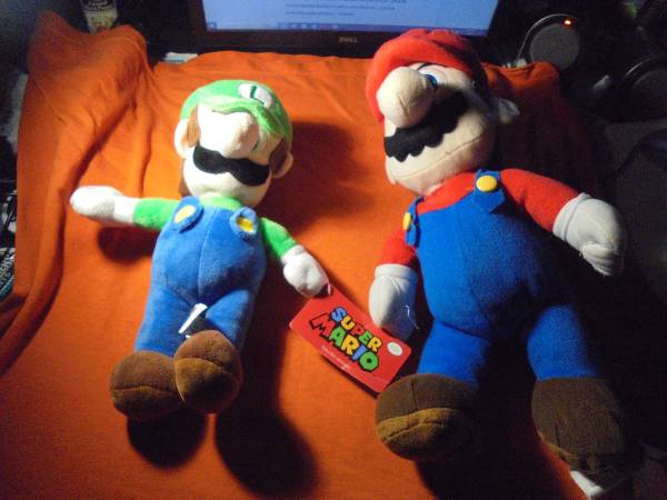 Mario is a large 15" Tall and is new with the original NintendoTags and Luigi is 11" Tall with all the original Tags!!