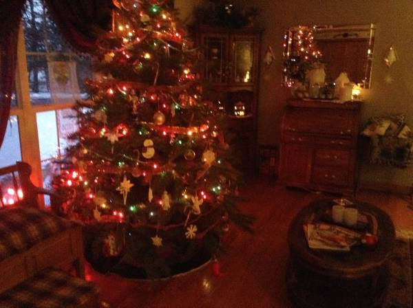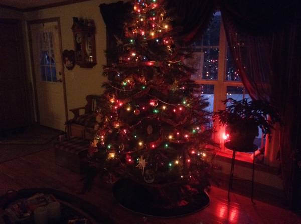 In box. Purchased at Menards approx. 3 years ago. Beautiful pre-lit tree, but some of the lights do not light up. Just downsized to a smaller tree.